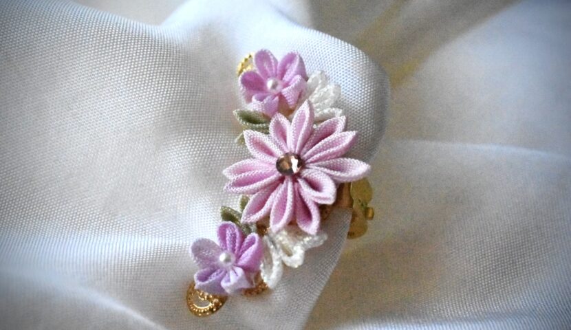 絹を使ったつまみ細工のアクセサリーを制作しています。1㎝角の小さな生地から一花づつ咲かせる緻密な手仕事です。絹ならではの気品のある光沢と、軽やかで小さくも上質な彩を添えるアクセサリーをお届けします。