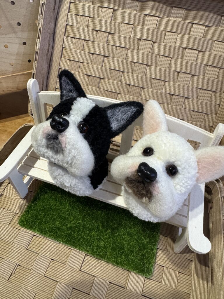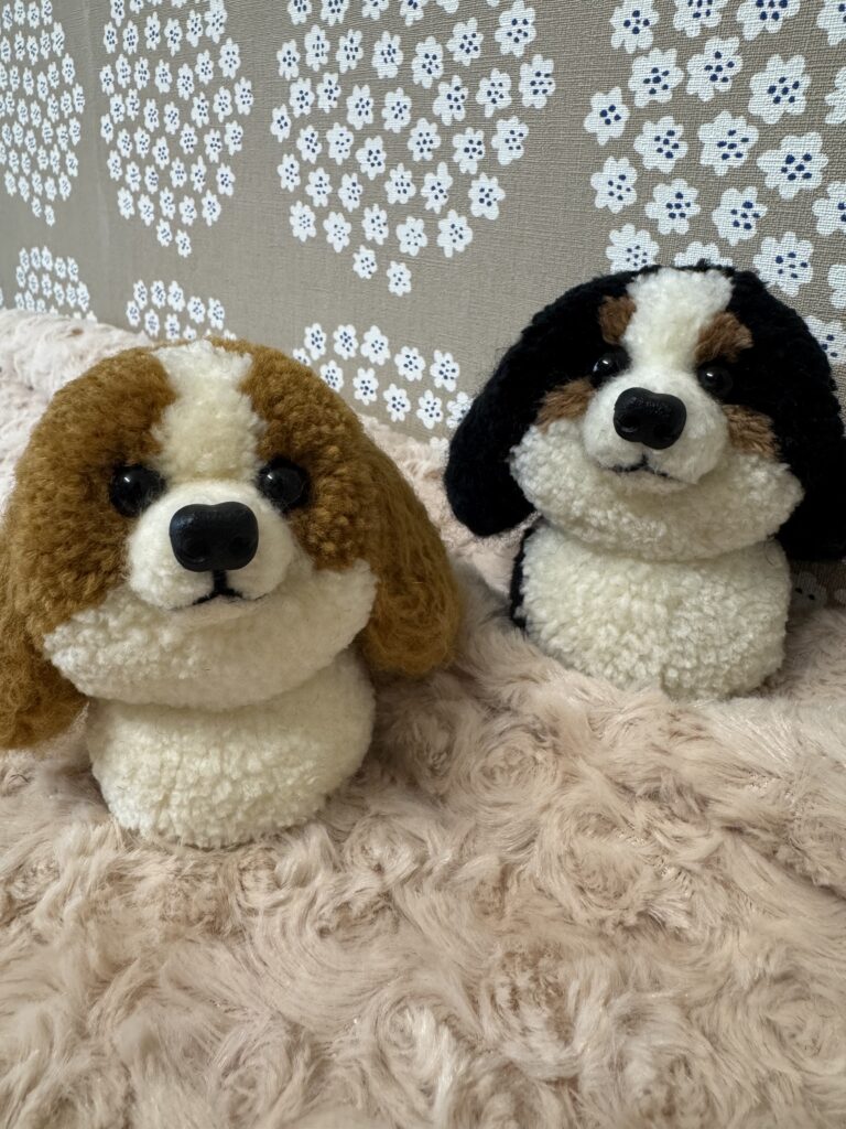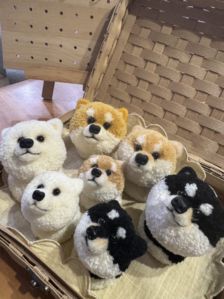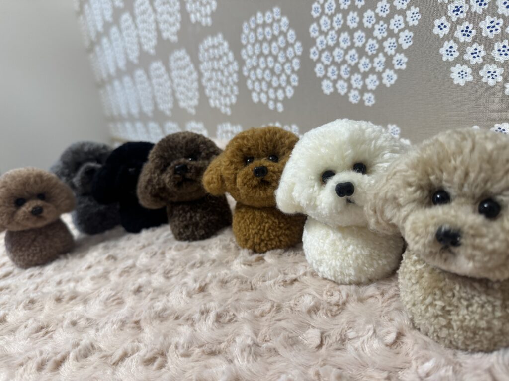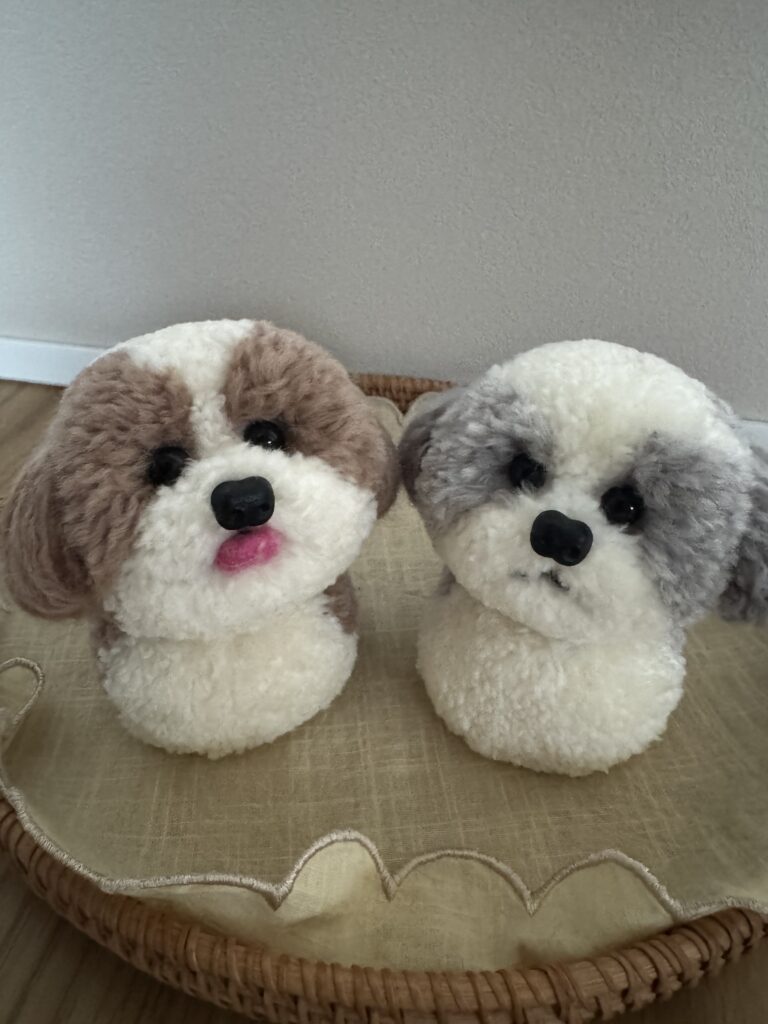 毛糸で手のひらサイズのわんちゃんを作っています。