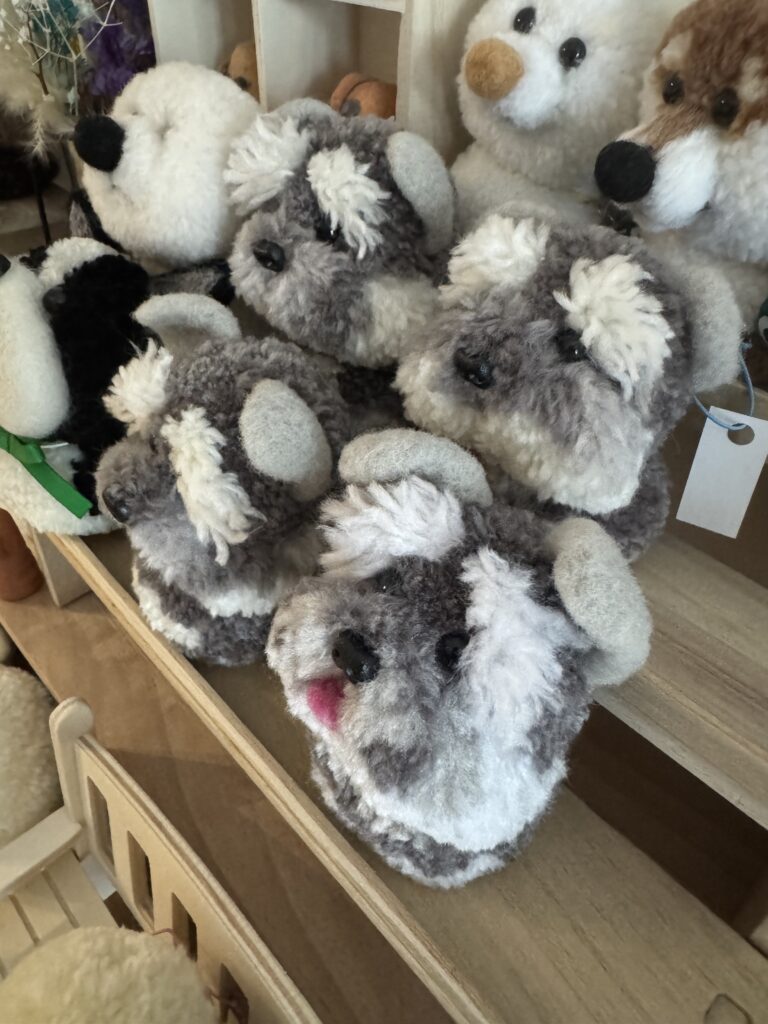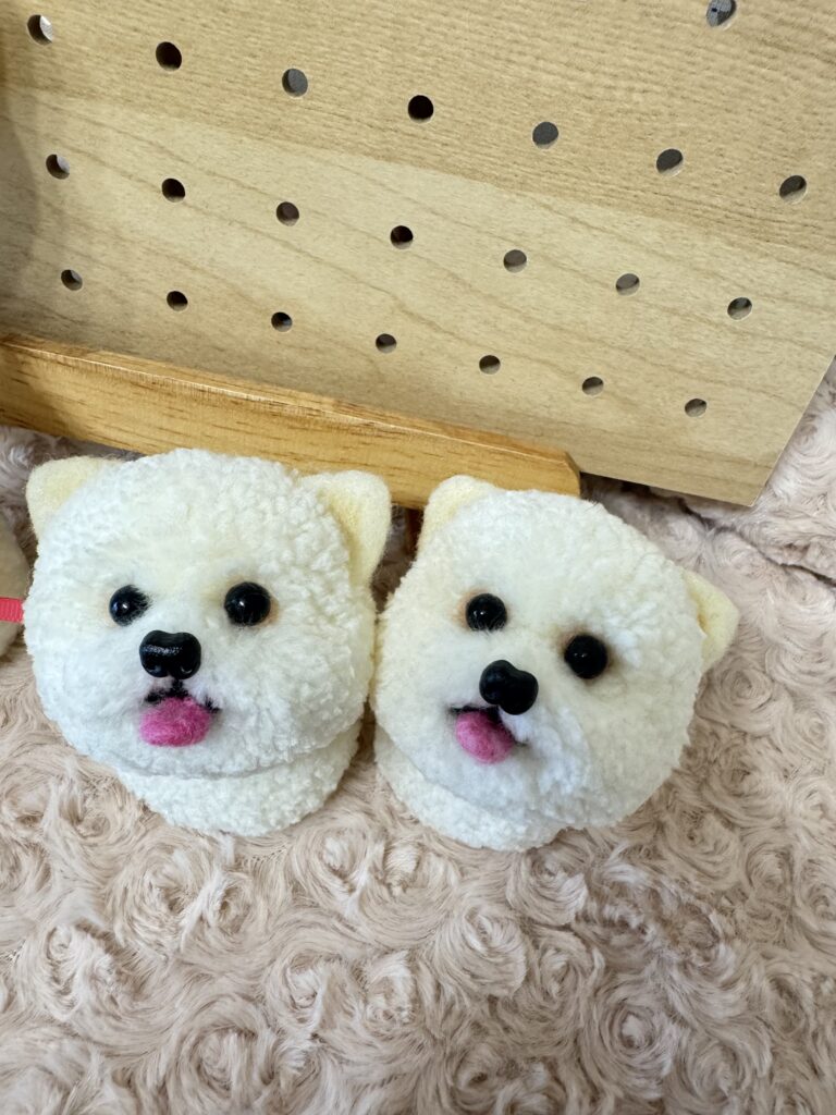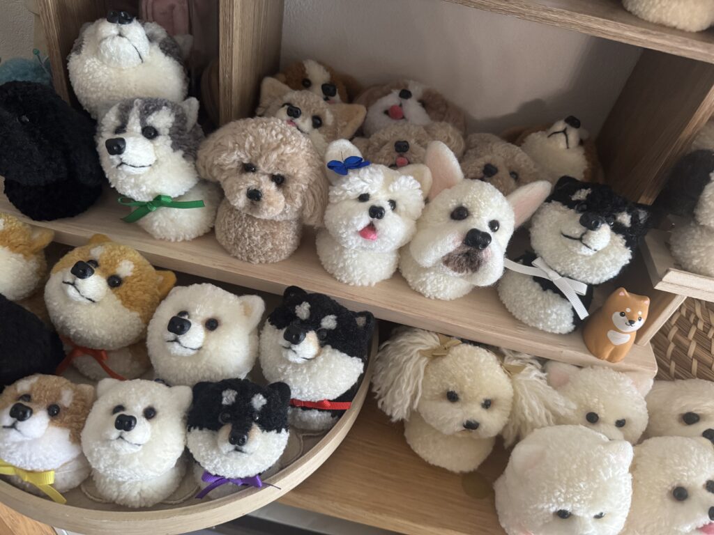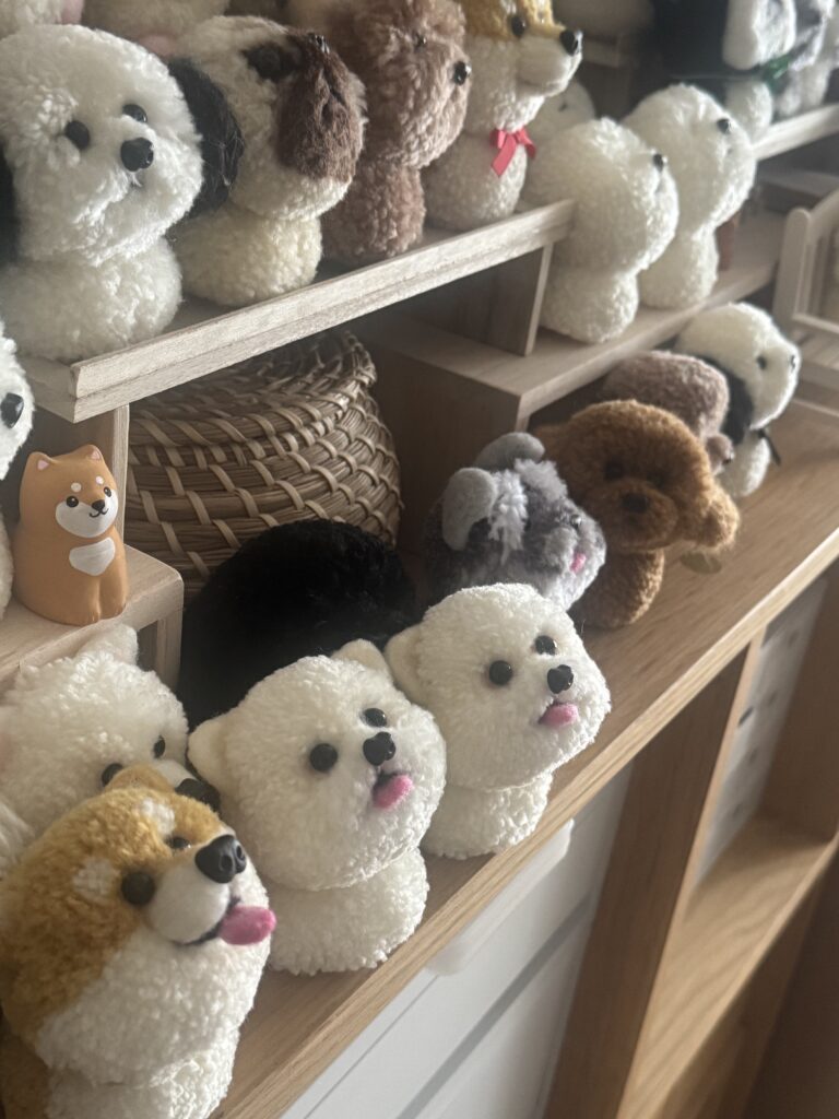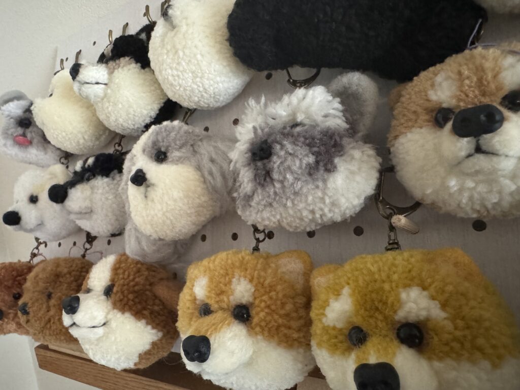 毛糸で手のひらサイズのわんちゃんを作っています。