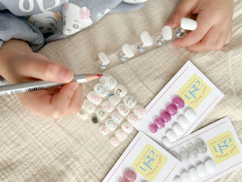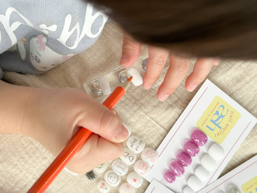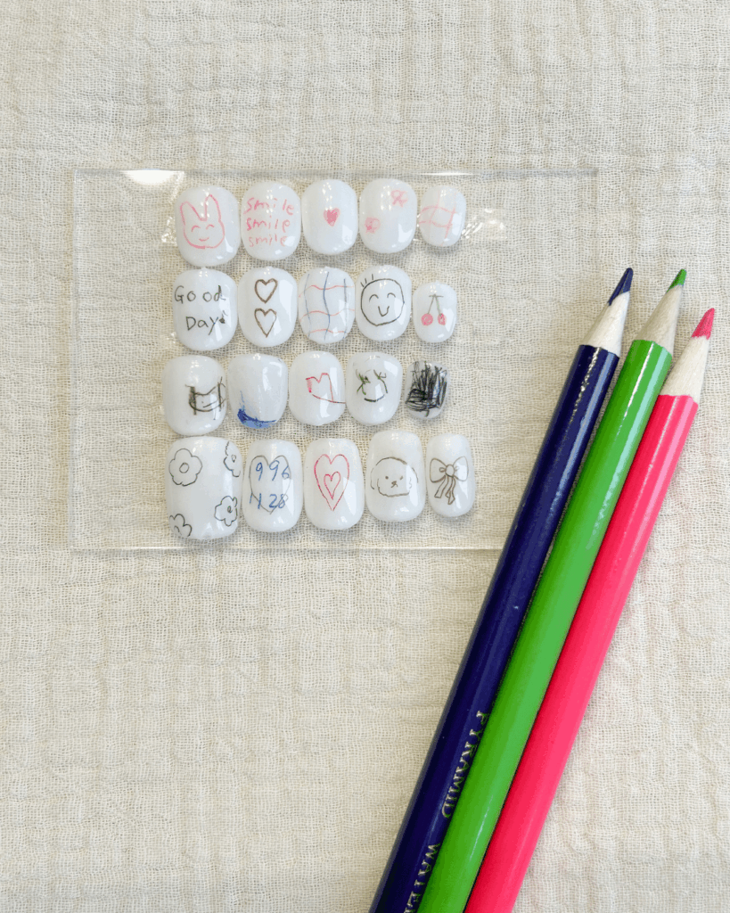 色鉛筆で5本のネイルチップに自由にお絵描き♪