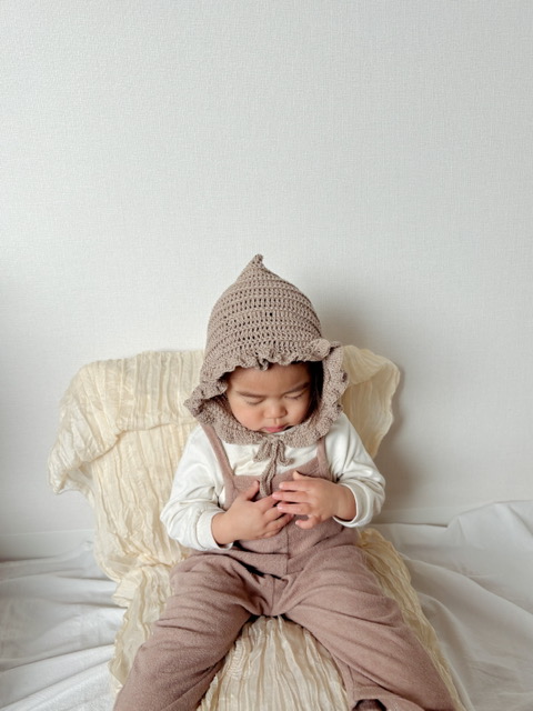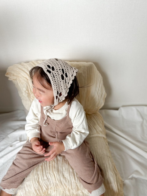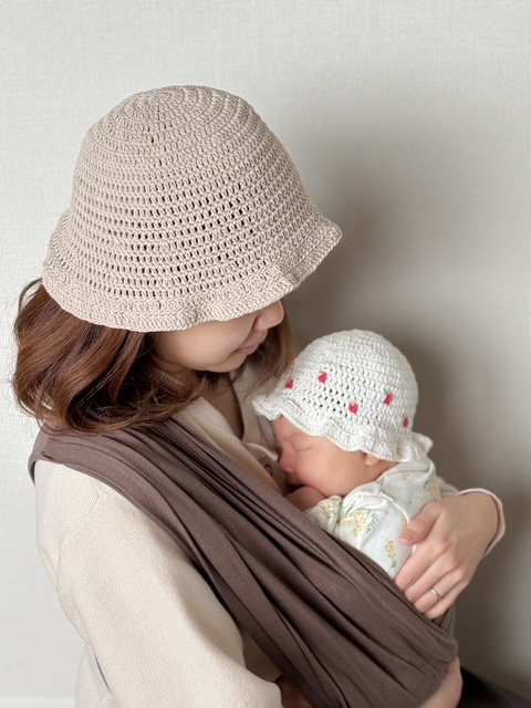ベビーとママに可愛いをお届け♡男の子にもおすすめしたい、春夏に向けたナチュラルな色味のコットンヤーンで小物を編みました!暖かくなるこれからのお出かけのお供にいかがですか♪
