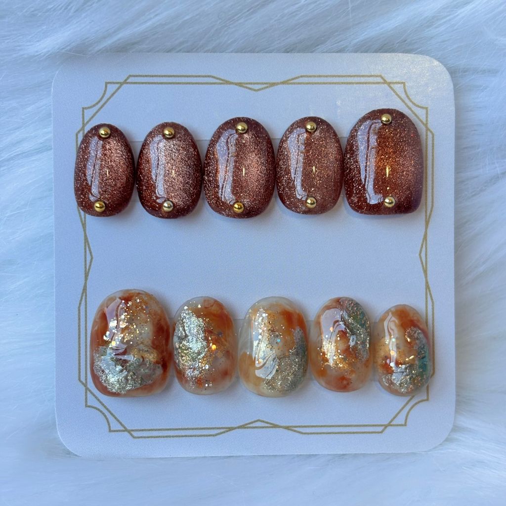メッセージ 1本ずつ自分でセレクトできる10枚セットのネイルチップバイキングや、色々なデザインのセットネイルを多数ご用意してお待ちしております♡